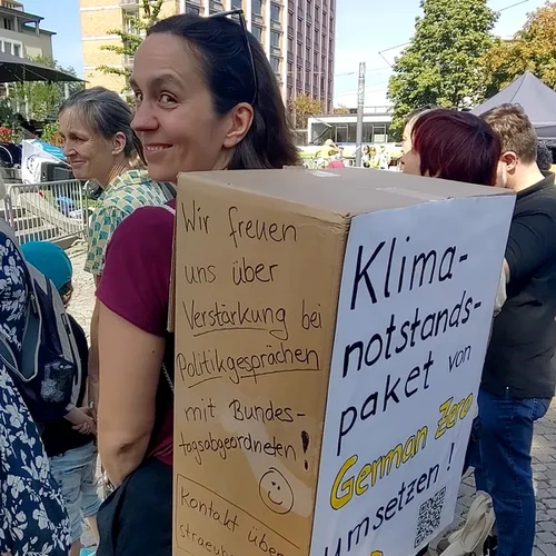 Ich hatte deswegen nach einer Möglichkeit gesucht, wie ich mich einbringen kann. Die Politikgespräche, die andere Gruppen organisieren, waren für mich aber nicht wirklich greifbar. Schließlich habe ich beim Tag der Klimademokratie jemanden von GermanZero kennengelernt, der mich mit Diana zusammengebracht hat.