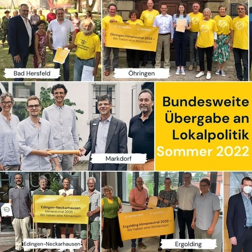 Die Klimavision ist ein druckfertiges Dokument mit Kennzahlen, Schaubildern und anschaulichen Texten, das vor Augen führt, wie eine bestimmte Stadt oder Gemeinde in Deutschland klimaneutral werden kann. Jeder Mensch mit einem Online-Zugang kann sie für seine eigene Gemeinde oder Stadt (oder eine andere) mit wenigen Klicks erstellen. von GermanZero, mit der jede Person innerhalb weniger Klicks herausfinden kann, wie ihre klimaneutrale Kommune aussieht.
