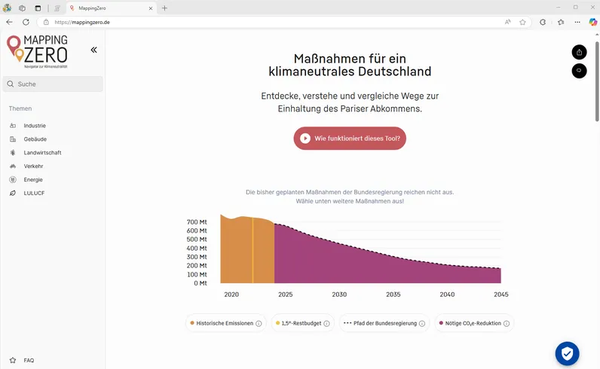 MappingZero hilft, Klimaschutz vom Ziel her zu denken: Welche Maßnahmen sind nötig, damit Deutschland pariskonform klimaneutral wird?